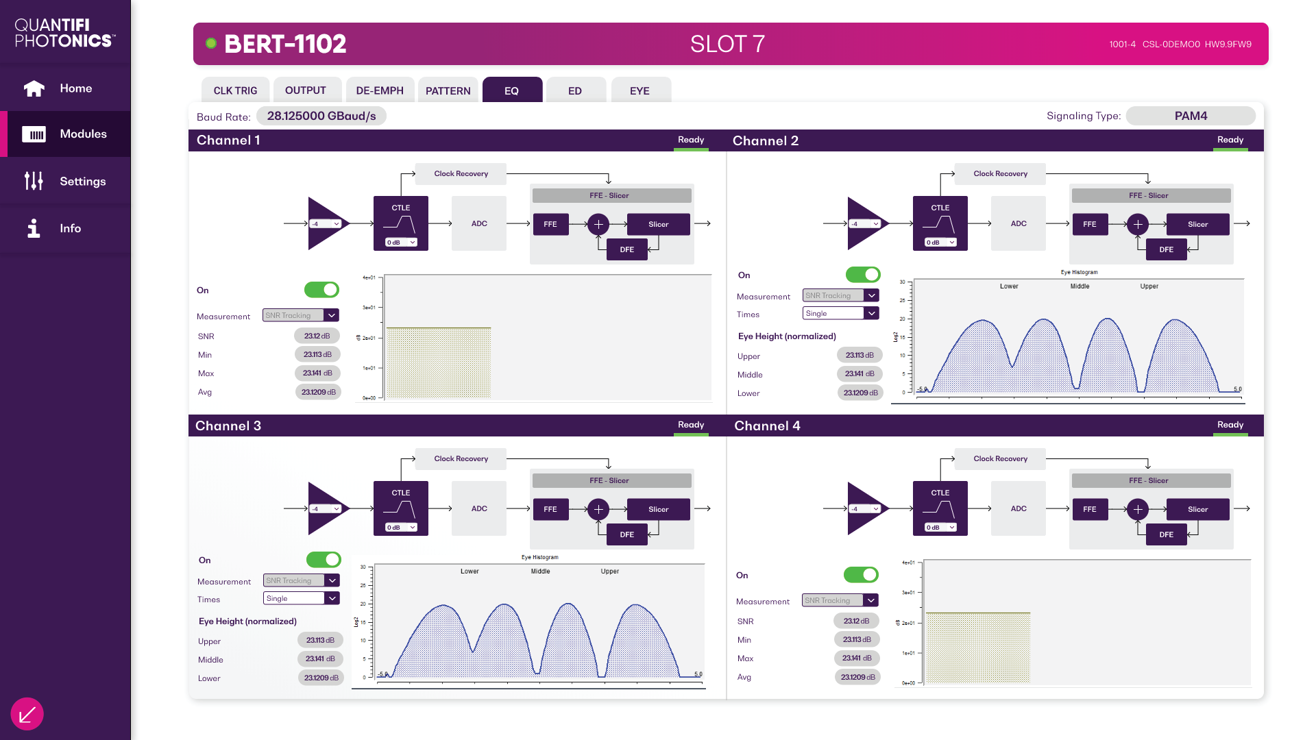 BERT-1102是一款4通道或8通道的脈沖模式發(fā)生器(PPG)和誤碼檢測器,專為設計、特性分析以及光學收發(fā)器和光電器件的生產(chǎn)測試而設計,支持高達29 Gbaud/s的符號率,涵蓋NRZ和PAM4格式。憑借其可擴展性和卓越的信號保真度,BERT-1102是400 Gb/s通信系統(tǒng)中一種性價比極高的測試解決方案。