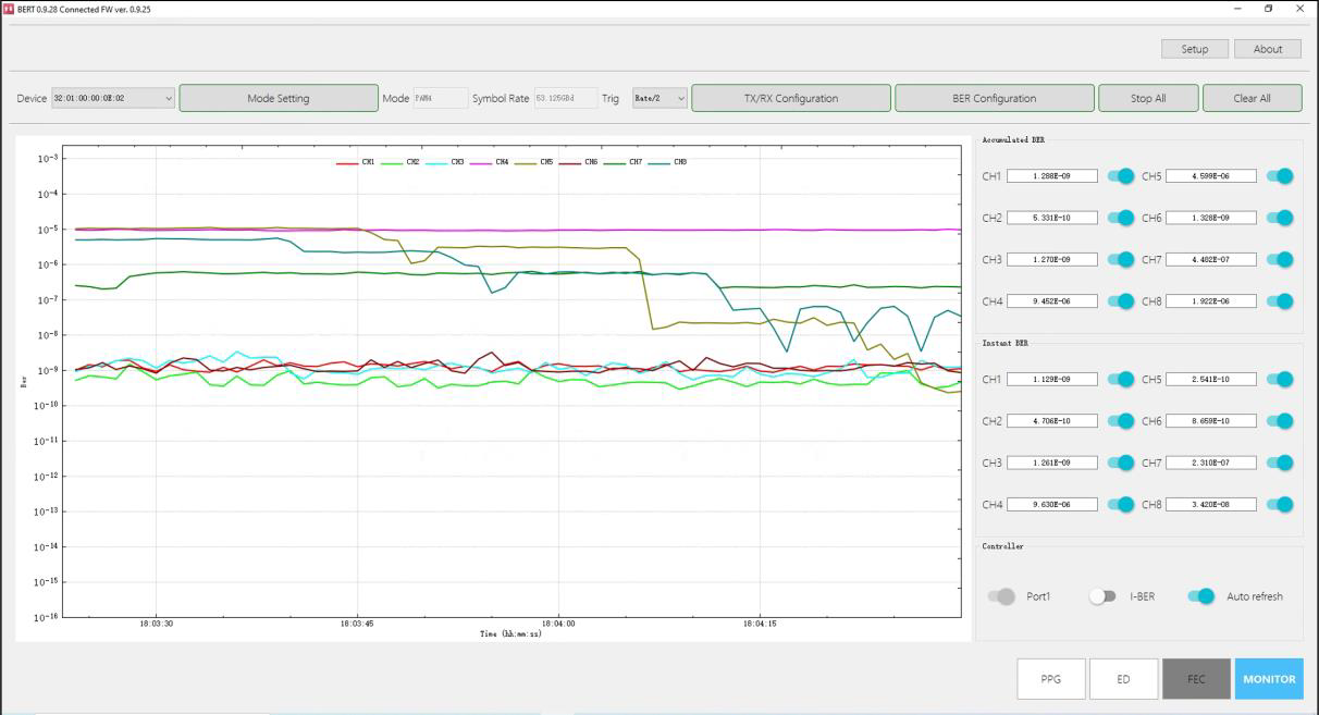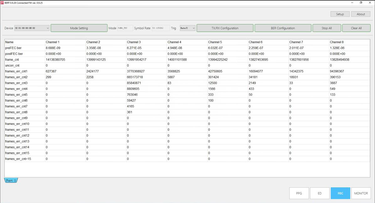 支持NRZ/PAM4/PAM4+FEC(KP4)模式。