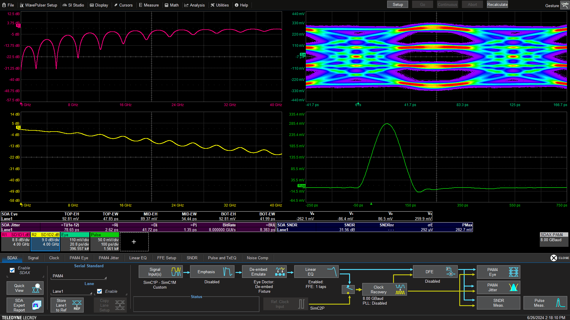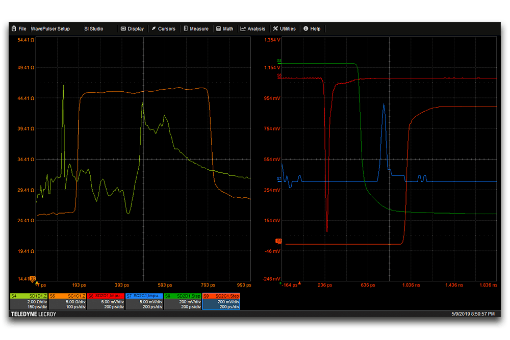 WavePulser 結(jié)果從 DC 開始,延伸至 40 GHz 帶寬,TDR 階躍響應(yīng)及經(jīng)時間門控/仿真的物理層信號響應(yīng)無需低頻或 DC 外推——對互連系統(tǒng)測試尤為理想,為高速互連測試提供完整帶寬與極致易用性。